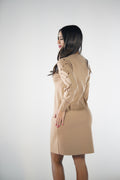Abito corto con dettaglio laser sulle maniche.Misto lana extravergine.