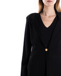 GIACCA IN MAGLIA - COLORE: NERO - COMPOSIZIONE: 86%VISCOSA, 14%POLIESTERE - ALTRE INFO: SPALLE IMBOTTITE, DETTAGLIO MONO BOTTONE, - LA MODELLA IN FOTO È ALTA 178CM ED INDOSSA LA TAGLIA XS