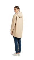 Ampio cappuccio integrato con collo alto e chiusura frontale coperta