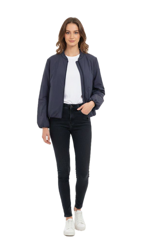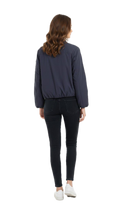 Collo, polsi e fondo rifiniti con una delicata arricciatura elastica che sigilla il calore e dona il classico volume "bomber"