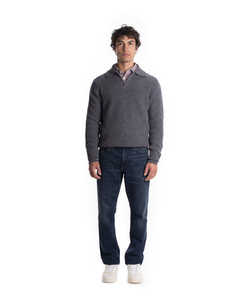 POLO DERBY - COLORE: GRIGIO - COMPOSIZIONE: 100% LANA - INFORMAZIONI: POLO DERBY, DETTAGLIO SCOLLO V