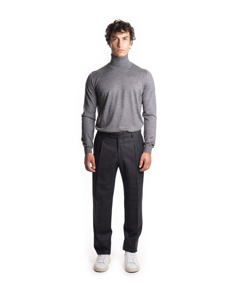 DOLCEVITA SETA LANA - COLORE: GRIGIO - COMPOSIZIONE: 70% LANA, 30% SETA - VESTIBILITÀ: IL MODELLO IN FOTO È ALTO 180CM ED INDOSSA LA TAGLIA 50 - INFORMAZIONI: DOLCEVITA SETA LANA