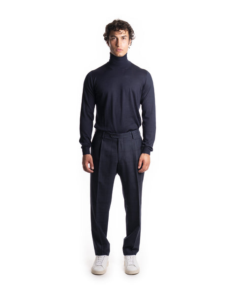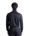 DOLCEVITA SETA LANA - COLORE: BLU - COMPOSIZIONE: 70% LANA, 30% SETA - VESTIBILITÀ: IL MODELLO IN FOTO È ALTO 180CM ED INDOSSA LA TAGLIA 50 - INFORMAZIONI: DOLCEVITA SETA LANA