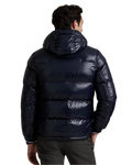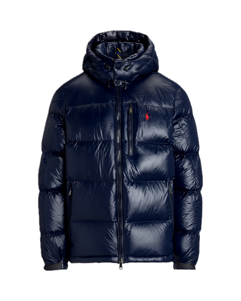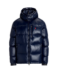 Questa giacca lucida in ripstop idrorepellente presenta un'imbottitura in piumino con fill power 650 ed è dotata di un cappuccio rimovibile.