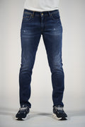 Jeans slim fit con abrasioni. Colore denim scuro