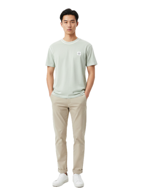 T-shirt a manica corta in jersey di cotone biologico, con scollo a costine e patch con logo Compass. Modello tinto in capo con effetto ‘FISSATO' per un aspetto tridimensionale.