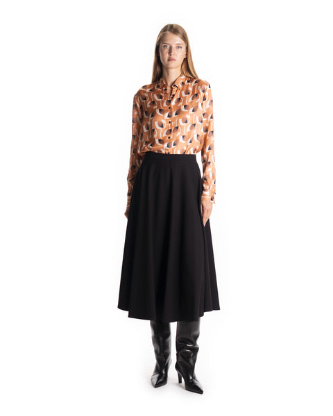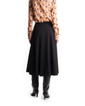 GONNA RUOTA - COLORE: NERO - COMPOSIZIONE: 100% POLIESTERE - VESTIBILITÀ: LA MODELLA IN FOTO È ALTA 178CM ED INDOSSA LA TAGLIA 40 - INFORMAZIONI: GONNA RUOTA MIDI