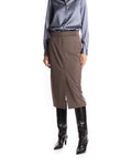 GONNA DOPPIO SPACCO - COLORE: TAUPE - COMPOSIZIONE: 63% POLIESTERE, 28% VISCOSA, 7% LANA, 2% ELASTAN - VESTIBILITÀ: LA MODELLA IN FOTO È ALTA 178CM ED INDOSSA LA TAGLIA 40 - INFORMAZIONI: GONNA LONGUETTE, DOPPIO SPACCO