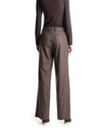 PANTALONE GESSATO - COLORE: MORO - COMPOSIZIONE: 63% POLIESTERE, 34% VISCOSA, 3% ELASTAN - VESTIBILITÀ: LA MODELLA IN FOTO È ALTA 178CM ED INDOSSA LA TAGLIA 40 - INFORMAZIONI: PANTALONE GESSATO, GAMBA AMPIA, DETTAGLIO TASCHE, DETTAGLIO BOTTONE