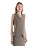 GILET TWILL VISCOSA - COLORE: GRIGIO - COMPOSIZIONE: 90% VISCOSA 10% POLIESTERE - ALTRE INFO: DETTAGLIO BOTTONI,SCOLLO V, SPACCO PICCOLO DIETRO, CINTURA DIETRO APPLICATA - LA MODELLA IN FOTO È ALTA 178CM ED INDOSSA LA TAGLIA 42