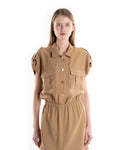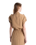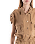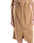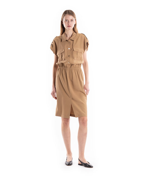 ABITINO CON TASCHE - COLORE: CUOIO - COMPOSIZIONE: 90%VISCOSA, 10%POLIESTERE - ALTRE INFO: DETTAGLIO TASCHE,BOTTONI,PICCOLO SPACCO DAVANTI, ELASTICO VITA - LA MODELLA IN FOTO È ALTA 178CM ED INDOSSA LA TAGLIA 40