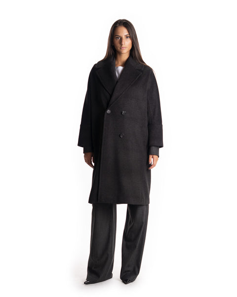 CAPPOTTO - COLORE: ANTRACITE - COMPOSIZIONE: 90% POLIESTERE, 10% RAYON - VESTIBILITÀ: LA MODELLA IN FOTO È ALTA 172CM ED INDOSSA LA TAGLIA 40 - INFORMAZIONI: CAPPOTTO MONOPETTO OVER