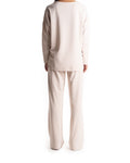 PANTALONE LARGO - COLORE: PANNA - COMPOSIZIONE: 95% POLIESTERE, 5% ELASTAN - VESTIBILITÀ: LA MODELLA IN FOTO È ALTA 172CM ED INDOSSA LA TAGLIA 40 - INFORMAZIONI: PANTALONE GAMBA AMPIA, ELASTICO VITA, DETTAGLIO TASCHE