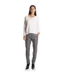 PANTALONE ELASTICO LUREX - COLORE: GRIGIO - COMPOSIZIONE: 80% LANA VERGINE, 16% VISCOSA, 2% POLIAMIDE, 2% ELASTAN - VESTIBILITÀ: LA MODELLA IN FOTO È ALTA 178CM ED INDOSSA LA TAGLIA 40 - INFORMAZIONI: PANTALONE ELASTICO LUREX, DETTAGLIO TASCHE, DETTAGLIO CHIUSURA