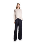 PANTALONE COULISSE GESSATO - COLORE: NAVY - COMPOSIZIONE: 100% LANA VERGINE - VESTIBILITÀ: LA MODELLA IN FOTO È ALTA 172CM ED INDOSSA LA TAGLIA 40 - INFORMAZIONI: PANTALONE COULISSE GESSATO, DETTAGLIO TASCHE