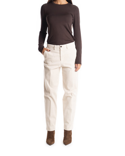 PANTALONE CHINOS CROP - COLORE: PANNA - COMPOSIZIONE: 96% COTONE, 4% ELASTANE - VESTIBILITÀ: LA MODELLA IN FOTO È ALTA 172CM ED INDOSSA LA TAGLIA 40 - INFORMAZIONI: PANTALONE GAMBA DRITTA, DETTAGLIO TASCHE