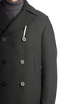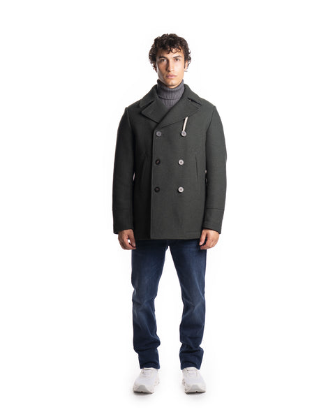 PEACOT RAIN WOOL - COLORE: VERDE - COMPOSIZIONE: 70% LANA, 30 POLIAMIDE - VESTIBILITÀ: IL MODELLO IN FOTO È ALTO 180CM ED INDOSSA LA TAGLIA 50 - INFORMAZIONI: PEACOAT RAIN WOOL, DETTAGLIO DOPPIOPETTO, DETTAGLIO BOTTONI, DETTAGLIO TASCHE, IMPERMEABILE