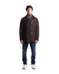 PEACOT RAIN WOOL - COLORE: MORO - COMPOSIZIONE: 70% LANA, 30 POLIAMIDE - VESTIBILITÀ: IL MODELLO IN FOTO È ALTO 180CM ED INDOSSA LA TAGLIA 50 - INFORMAZIONI: PEACOAT RAIN WOOL, DETTAGLIO DOPPIOPETTO, DETTAGLIO BOTTONI, DETTAGLIO TASCHE, IMPERMEABILE