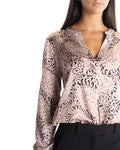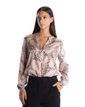 BLUSA - COLORE: TAUPE - COMPOSIZIONE: 93% SATIN, 7% SPANDEX - VESTIBILITÀ: LA MODELLA IN FOTO È ALTA 172CM ED INDOSSA LA TAGLIA S - INFORMAZIONI: BLUSA MORBIDA, DETTAGLIO SCOLLO, STAMPA LEOPARDATA