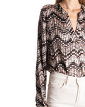 SPARK BLUSA - COLORE: ROSA - COMPOSIZIONE: 93% SATIN, 7% SPANDEX - VESTIBILITÀ: LA MODELLA IN FOTO È ALTA 178CM ED INDOSSA LA TAGLIA M - INFORMAZIONI: BLUSA MORBIDA, DETTAGLIO SCOLLO, STAMPA FANTASIA