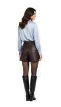 Il tessuto satinato cade morbidamente sulla figura, offrendo un riflesso luminoso e una sensazione di estrema setosità sulla pelle