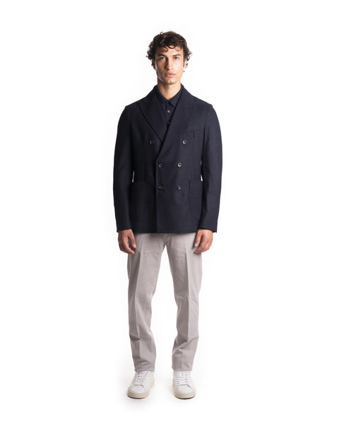 DOPPIO PETTO CASHMERE - COLORE: NAVY - COMPOSIZIONE: 90% LANA, 10% CASHMERE - VESTIBILITÀ: IL MODELLO IN FOTO È ALTO 180CM ED INDOSSA LA TAGLIA 50 - INFORMAZIONI: GIACCA DOPPIO PETTO, DETTAGLIO TASCHE, DETTAGLIO BOTTONI