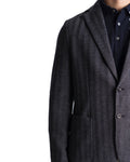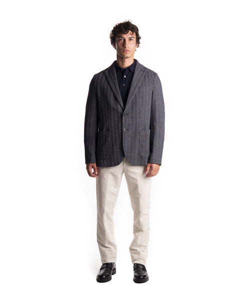 GIACCA JERSEY RESCA - COLORE: NAVY - COMPOSIZIONE: 46% LANA VERGINE, 42% COTONE, 12% POLIESTERE - VESTIBILITÀ: IL MODELLO IN FOTO È ALTO 180CM ED INDOSSA LA TAGLIA 50 - INFORMAZIONI: GIACCA JERSEY MONOPETTO RESCA, DETTAGLIO BOTTONE, DETTAGLIO TASCA