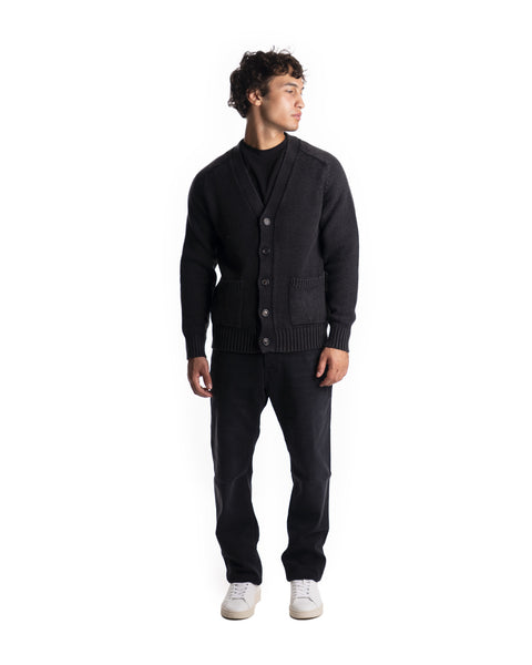 CARDIGAN - COLORE: NERO - COMPOSIZIONE: 100% LANA - VESTIBILITÀ: IL MODELLO IN FOTO È ALTO 180CM ED INDOSSA LA TAGLIA L - INFORMAZIONI: CARDIGAN, DETTAGLIO BOTTONI, DETTAGLIO TASCHE