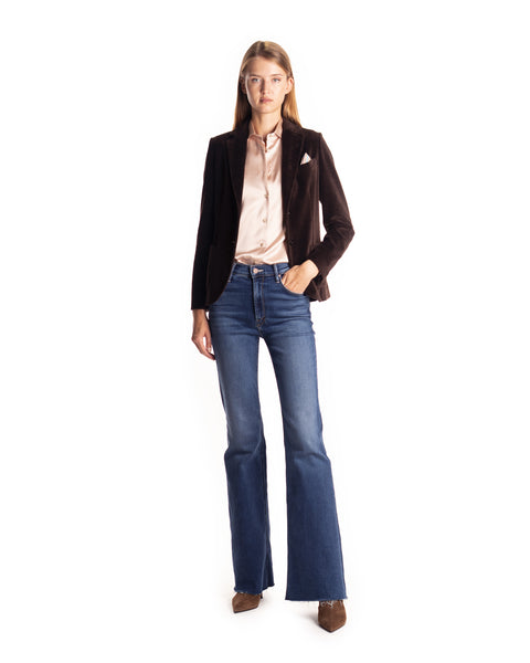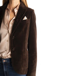 GIACCA VELLUTO - COLORE: MARRONE - COMPOSIZIONE: 80% COTONE, 20% POLIESTERE - VESTIBILITÀ: LA MODELLA IN FOTO È ALTA 178CM ED INDOSSA LA TAGLIA 40 - INFORMAZIONI: GIACCA VELLUTO MONOPETTO, DETTAGLIO BOTTONE, DETTAGLIO TASCHE FAZZOLETTO