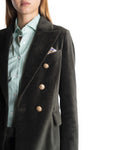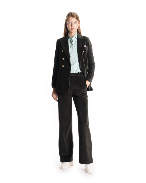 GIACCA DOPPIO PETTO VELLUTO - COLORE: VERDE - COMPOSIZIONE: 80% COTONE, 20% POLIESTERE - VESTIBILITÀ: LA MODELLA IN FOTO È ALTA 178CM ED INDOSSA LA TAGLIA 40 - INFORMAZIONI: GIACCA DOPPIO PETTO VELLUTO, DETTAGLIO FAZZOLETTO, DETTAGLIO BOTTONI ORO