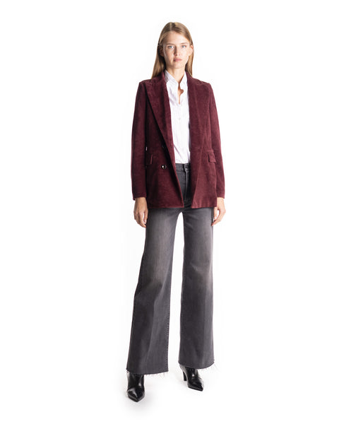 GIACCA VELLUTO - COLORE: BORDEAUX - COMPOSIZIONE: 80% COTONE, 20% POLIESTERE - VESTIBILITÀ: LA MODELLA IN FOTO È ALTA 178CM ED INDOSSA LA TAGLIA 40 - INFORMAZIONI: GIACCA VELLUTO A COSTE, DETTAGLIO BOTTONI, DETTAGLIO TASCA