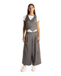 GILET BOTTONI - COLORE: GRIGIO - COMPOSIZIONE: 70% POLYESTER, 20% RAYON, 10%ULD - VESTIBILITÀ: LA MODELLA IN FOTO È ALTA 172CM ED INDOSSA LA TAGLIA 34 - INFORMAZIONI: GILET, DETTAGLIO TASCA, DETTAGLIO BOTTONI, SCOLLO V