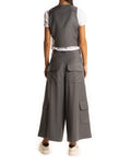 PANTALONE CARGO - COLORE: GRIGIO - COMPOSIZIONE: 70% POLYESTER, 20% RAYON, 10%ULD - VESTIBILITÀ: LA MODELLA IN FOTO È ALTA 172CM ED INDOSSA LA TAGLIA 34 - INFORMAZIONI: PANTALONE GAMBA AMPIA, COULOTTE, TASCONI, 1 PENCES