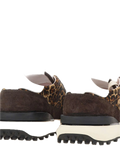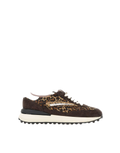 Sneakers D.A.T.E. donna "Athleta Animalier" in cavallino leopardato con inserti in suede marrone. Presentano patch cucita sulla linguetta con scritta D.A.T.E. impressa, lacci in cotone bianchi, logo quadrato impresso sul talloncino in pelle bianca e dettaglio laterale ricamato in bianco. Foderate in pelle e spugna di cotone, con soletta interna rialzata di 2,5 cm per un comfort superiore e suola in gomma alta 2-3,5 cm.Vestibilità regular.