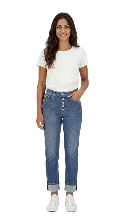 • Il taglio è regular-straight (dritto), completato da un fondo risvoltato