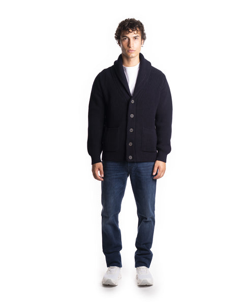 MAGLIA CON COLLO SCIALLE - COLORE: BLU - COMPOSIZIONE: 100% LANA MERINO - VESTIBILITÀ: IL MODELLO IN FOTO È ALTO 180CM ED INDOSSA LA TAGLIA 50 - INFORMAZIONI: MAGLIA CON BOTTONI,PARTICOLARE COLLO A SCIALLE
