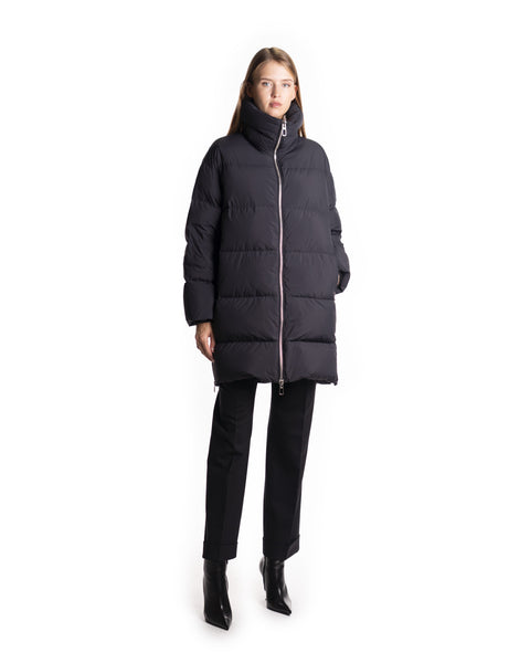 PIUMINO SHIVA - COLORE: NERO - COMPOSIZIONE: 100% POLIAMMIDE - VESTIBILITÀ: LA MODELLA IN FOTO È ALTA 178CM ED INDOSSA LA TAGLIA 40 - INFORMAZIONI: PIUMINO SHIVA, DETTAGLIO ZIP, DETTAGLIO TASCHE