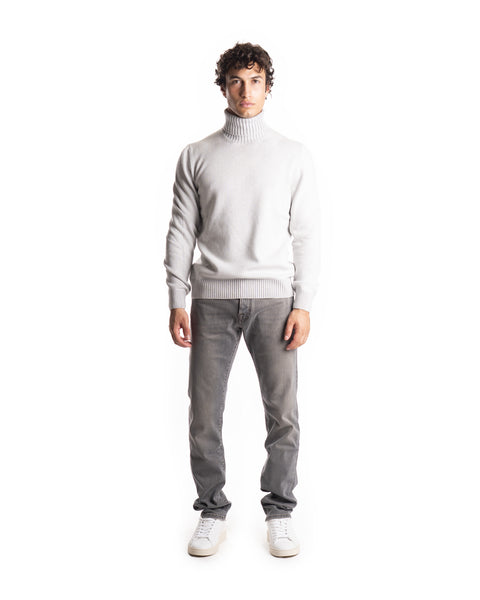 DOLCEVITA MISTO CASHMERE - COLORE: GRIGIO - COMPOSIZIONE: 80% LANA VERGINE, 10% VISCOSA, 10% CASHMERE - VESTIBILITÀ: IL MODELLO IN FOTO È ALTO 180CM ED INDOSSA LA TAGLIA 50 - INFORMAZIONI: DOLCEVITA MISTO CASHMERE, DETTAGLIO COLLO E POLSINI COSTE