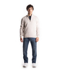 MEZZA ZIP MISTO CASHMERE - COLORE: SABBIA - COMPOSIZIONE: 80% LANA VERGINE, 10% VISCOSA, 10% CASHMERE - VESTIBILITÀ: IL MODELLO IN FOTO È ALTO 180CM ED INDOSSA LA TAGLIA 50 - INFORMAZIONI: MEZZA ZIP MISTO CASHMERE, DETTAGLIO COLLO COSTA