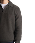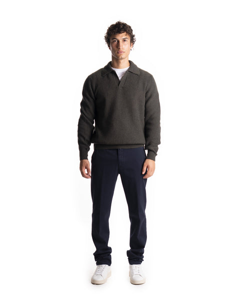 POLO DERBY - COLORE: MILITARE - COMPOSIZIONE: 100% LANA VERGINE - VESTIBILITÀ: IL MODELLO IN FOTO È ALTO 180CM ED INDOSSA LA TAGLIA 50 - INFORMAZIONI: POLO DERBY A COSTE, DETTAGLIO COLLO V