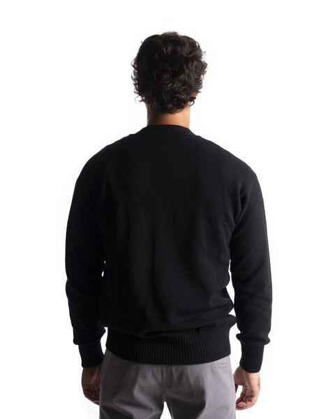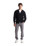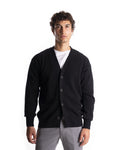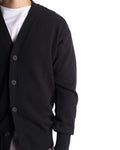 CARDIGAN GEELONG - COLORE: NERO - COMPOSIZIONE: 100% LANA VERGINE - VESTIBILITÀ: IL MODELLO IN FOTO È ALTO 180CM ED INDOSSA LA TAGLIA 50 - INFORMAZIONI: DETTAGLIO BOTTONI, ELASTICO VITA E POLSI