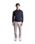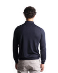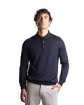 POLO SETA LANA - COLORE: BLU - COMPOSIZIONE: 70% LANA, 30% SETA - VESTIBILITÀ: IL MODELLO IN FOTO È ALTO 180CM ED INDOSSA LA TAGLIA 50 - INFORMAZIONI: POLO SETA COTONE,DETTAGLIO BOTTONE