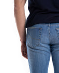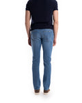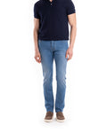 JEANS DENIM 8 ONCE CHIARO - COLORE: CASTANO - COMPOSIZIONE: 66% COTONE 20% POLIESTERE 12% LYOCELL - ALTRE INFO: DETTAGLIO "J" TASCHE , FIT SLIM, PATCH DIETRO - IL MODELLO IN FOTO È ALTO 190CM ED INDOSSA LA TAGLIA 34