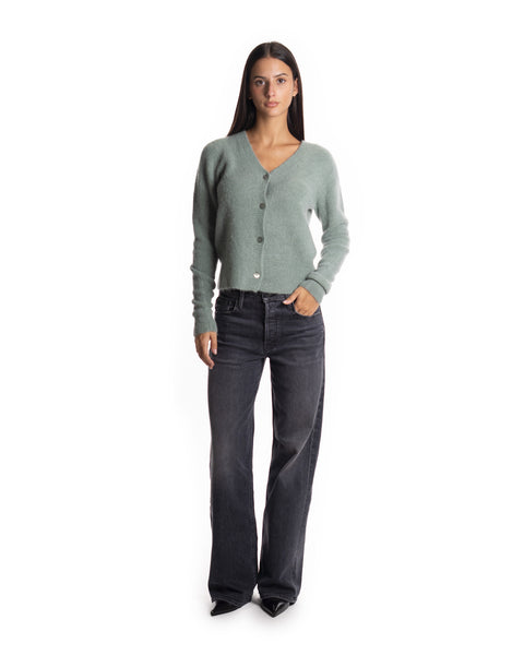 CARDIGAN ALPACA - COLORE: VERDE - COMPOSIZIONE: 100% LANA VERGINE - VESTIBILITÀ: LA MODELLA IN FOTO È ALTA 178CM ED INDOSSA LA TAGLIA S - INFORMAZIONI: CARDIGAN ALPACA, DETTAGLIO BOTTONI