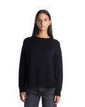 MAGLIA GIRO - COLORE: NERO - COMPOSIZIONE: 100% LANA VERGINE - VESTIBILITÀ: LA MODELLA IN FOTO È ALTA 178CM ED INDOSSA LA TAGLIA S - INFORMAZIONI: MAGLIA GIROCOLLO