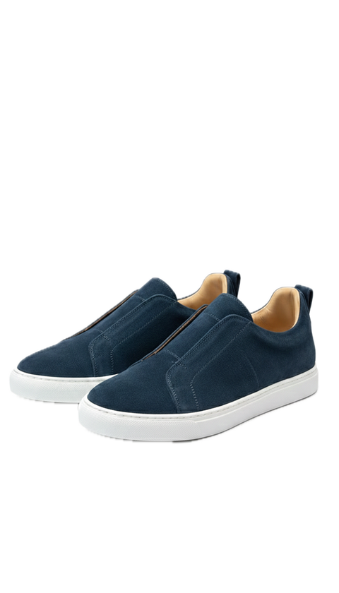 La tomaia è realizzata in un camoscio blu