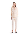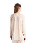 CAMICIA CON NAPPINE - COLORE: AZZURRO - COMPOSIZIONE: 100%LINO - ALTRE INFO: DETTAGLIO COLLO CON NAPPINE CHE SI POSSONO ALLACCIARE, MORBIDA,POLSINI ELASTICIZZATI - LA MODELLA IN FOTO È ALTA 178CM ED INDOSSA LA TAGLIA M