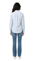 Colletto a punta, abbottonatura frontale classica e maniche lunghe con polsini regolabili