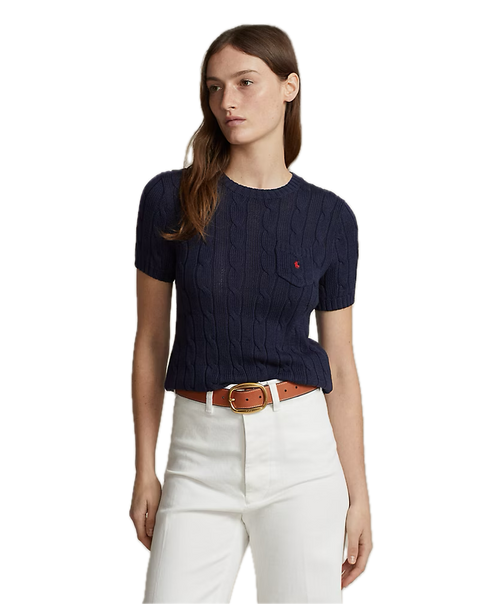 - Maniche corte con fondo manica a coste. Orlo con lavorazione a coste.