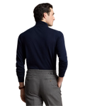 Il leggero filato di lana italiano di questa maglia, sottoposto a trattamento speciale per semplificarne la cura e pettinato per offrire una maggiore resistenza, vanta una fine e morbida texture.